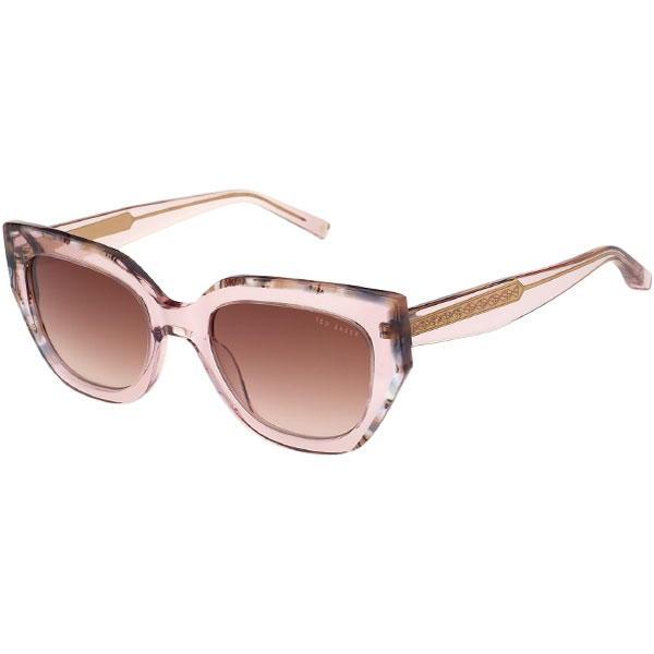 Ted Baker brings you this modern take on cat eye sunglasses! Shown here in feminine crystal pale pink, edged in tortoiseshell, you'll really be making a statement in these stylish sunglasses.